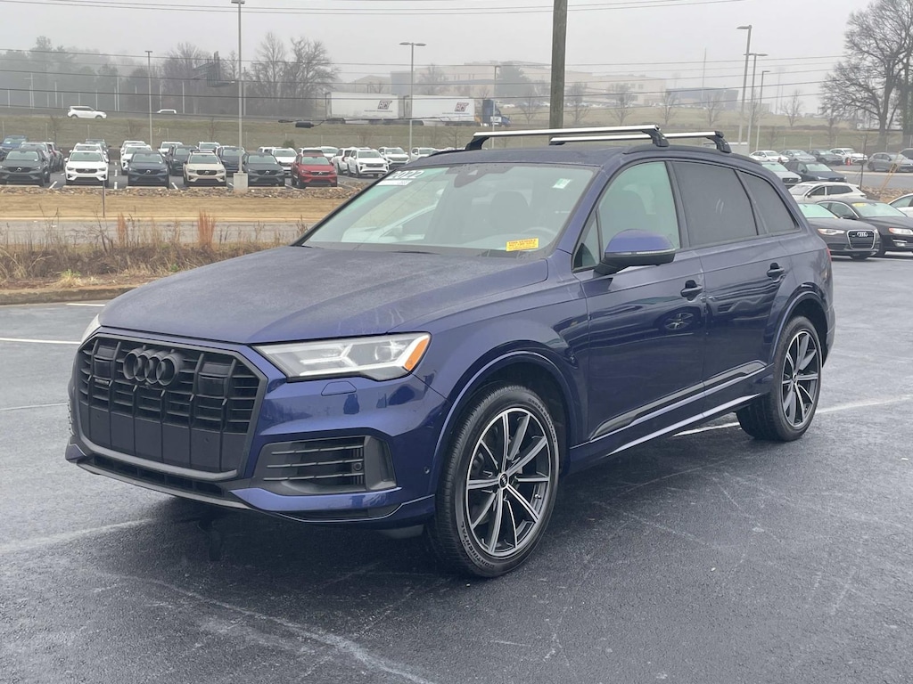2022 Audi Q7 55 Premium Plus quattro Navarra Blue Metallic quattro 8-Speed Automatic with Tiptronic 3.0L TFSI 2022 Audi Q7 55 Premium Plus Navarra Blue Metallic, Q7 55 Premium Plus quattro, Navarra Blue Metallic, Black w/Leather Seating Surfaces, Adaptive Cruise Assist w/Lane Guidance, Audi Phone Box w/Wireless Charging, Bang & Olufsen 3D Premium Sound System, Black Optic Package, Convenience Package, Heated Steering Wheel, Illuminated Door Sills, Interior Protection Package, Navigation system: Audi MMI Navigation plus with Touch Response, Power Liftgate, Power moonroof: Panoramic, Premium Plus Package, Topview Camera System, Tow Hitch Receiver, Towing Package, Wheels: 20' 5-Spoke Turbine-Design, Wheels: 21' 10-Spoke-Star-Design Bi-Color Black.