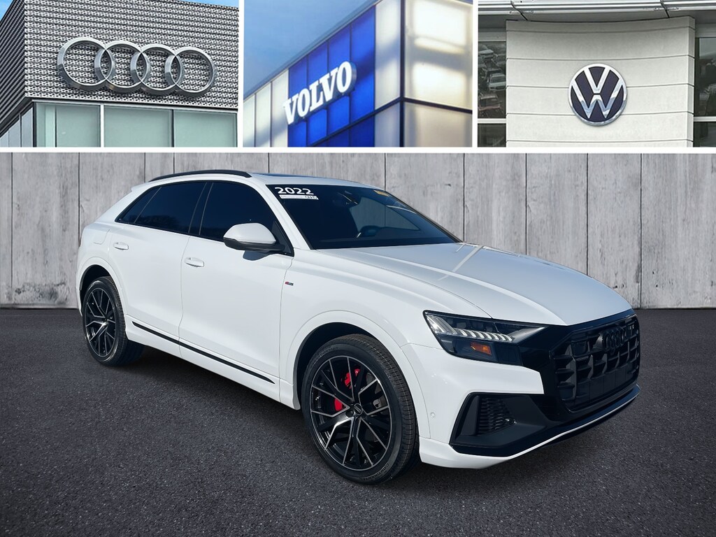 2022 Audi Q8 55 Premium Plus quattro Glacier White Metallic quattro 8-Speed Automatic with Tiptronic 3.0L V6 Turbocharged DOHC 24V LEV3-ULEV70 335hp 2022 Audi Q8 55 Premium Plus Glacier White Metallic, Q8 55 Premium Plus quattro, 3.0L V6 Turbocharged DOHC 24V LEV3-ULEV70 335hp, 4-Zone Climate Control, Adaptive Cruise Assist w/Lane Guidance, Adaptive suspension, Armrests Leather Package, Bang & Olufsen 3D Premium Sound System, Black Optic Package, Contour/Ambient LED Interior Lighting Package, Convenience Package, Driver & Passenger Front Seats w/Ventilation, Executive Package, HD Matrix-Design LED Headlights, Heated Rear Seats, Illuminated Door Sills, LED DRL & Taillights, Navigation system: Audi MMI Navigation plus with Touch Response, Power Liftgate, Power moonroof: Panoramic, Premium Plus Package, Red Painted Brake Calipers, S Line Plus Package, Sunshades for Rear Doors, Tow Hitch Receiver, Towing 7 Pin Connector, Towing Package, Wheels: 21' Bi-Color 5-W-Spoke-Design, Wheels: 22' Audi Sport 5-V-Spoke-Star-Design.