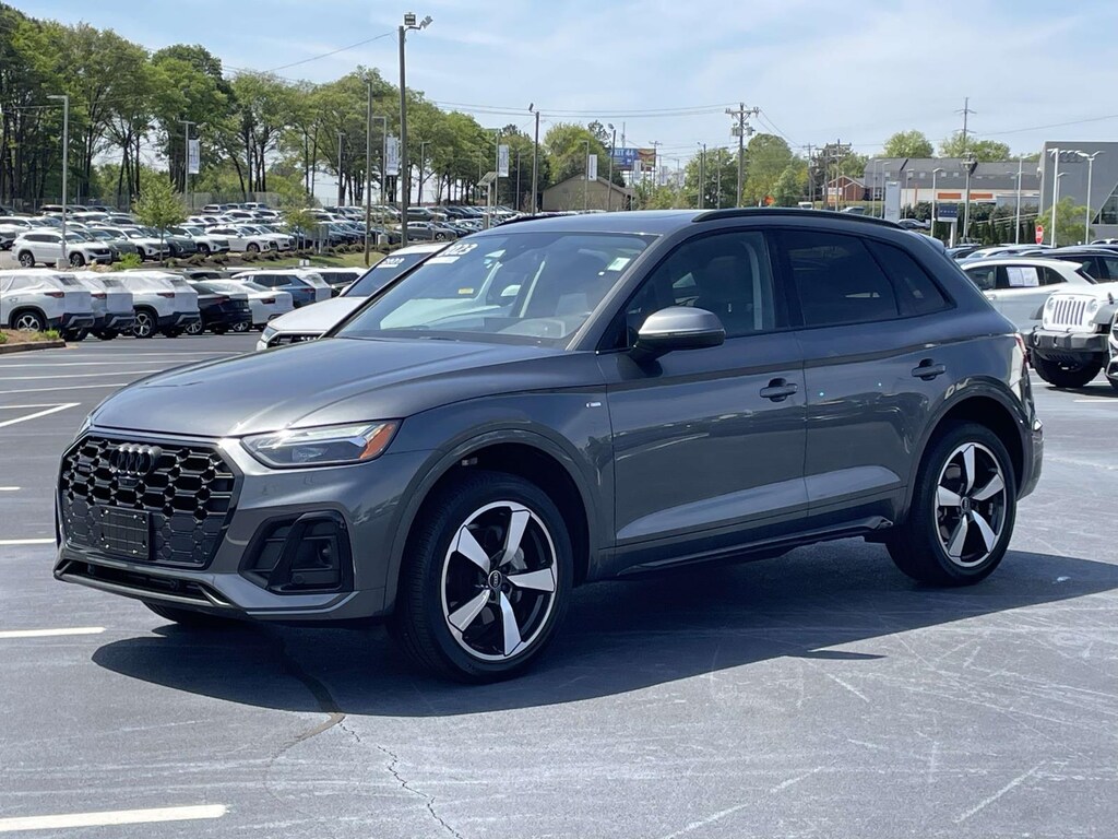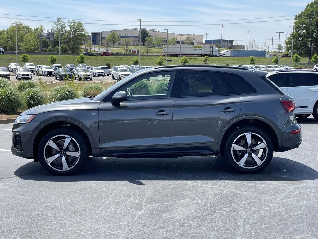 2023 Audi Q5 45 S line Premium Plus quattro Daytona Gray Pearl quattro 7-Speed Automatic S tronic 2.0L Turbocharged Black Leather, ABS brakes, Alloy wheels, Audi Active Lane Assist, Audi Advanced Key, Audi Connect PLUS, Audi Virtual Cockpit Plus, Auto-Dimming Power Folding Exterior Mirrors, Bang & Olufsen Sound System w/3D Sound, Black Exterior Trim, Black Optic Package, Black Roof Rails, Compass, Convenience Package, Driver Seat Memory, Electronic Stability Control, Front dual zone A/C, Hands-On Detection Steering Wheel, Heated door mirrors, Heated front seats, Heated Steering Wheel, Illuminated entry, Leatherette Covered Center Console & Door Armrests, Low tire pressure warning, MMI Navigation Plus, Navigation Package, Panoramic Sunroof, Power Adjustable Steering Column, Power Liftgate, Premium Plus Package, Remote keyless entry, SiriusXM w/360L, Top View Camera System, Traction control, Traffic Jam Assist, Wheels: 19' 5-Double-Arm Design Bi-Color Finish.