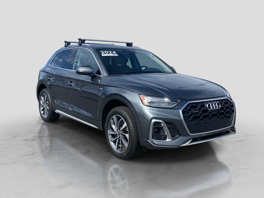 2024 Audi Q5 45 S line Premium Plus quattro Daytona Gray quattro 7-Speed Automatic S tronic 2.0L Turbocharged Black Leather, ABS brakes, Alloy wheels, Compass, Electronic Stability Control, Front dual zone A/C, Heated door mirrors, Heated front seats, Illuminated entry, Low tire pressure warning, Power Liftgate, Remote keyless entry, Traction control.