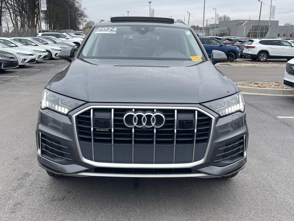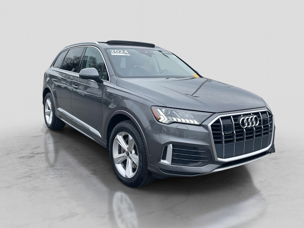 2024 Audi Q7 45 Premium Plus quattro Samurai Gray Metallic quattro 8-Speed Automatic with Tiptronic 2.0L 4-Cylinder TFSI 2024 Audi Q7 45 Premium Plus Samurai Gray Metallic, Q7 45 Premium Plus quattro, Samurai Gray Metallic, Black w/Leather Seating Surfaces, Bang & Olufsen Premium Sound System w/3D Sound, Contour/Ambient LED Interior Lighting Package, Convenience Package, Illuminated Door Sills, Matrix-Design LED Headlights w/DRL Signature, Navigation system: Audi MMI Navigation plus with Touch Response, Power Liftgate, Power moonroof: Panoramic, Premium Plus Package.