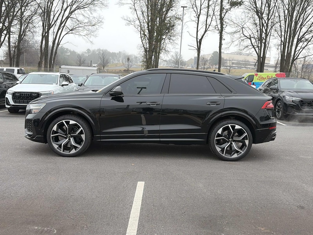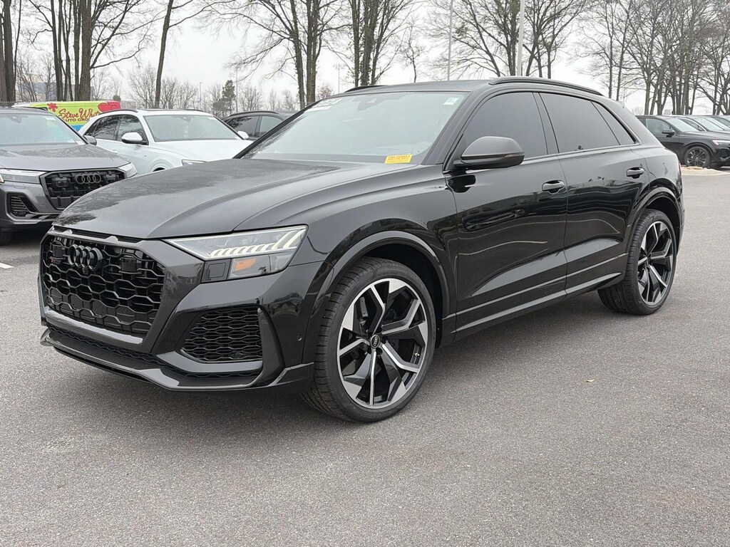 2024 Audi RS Q8 4.0T quattro Black Metallic quattro 8-Speed Automatic with Tiptronic 4.0L V8 Turbocharged DOHC 32V LEV3-ULEV125 590hp 2024 Audi RS Q8 4.0T Black Metallic, PRESTIGE, COLD WEATHER PACKAGE, WARM WEATHER PACKAGE, TECHNOLOGY PACKAGE, Alcantara Steering Wheel, Bang & Olufsen Premium Sound System w/3D Sound, Black Dinamica Headliner, Black Exterior Trim, Black Mirror Housings, Black Optic Package, Black Roof Rails, Black Seat Belts w/Gray Edge, Carbon Mask & Front Bumper Inlays, Carbon Mirror Housings, Carbon Package, Carbon Rear Bumper Inlay, Carbon Rear Lighting Strip, Dual-Pane Acoustic Glass for Side Windows, Executive Package, Head-Up Display, Heated Rear Seats, Intersection Assist, Leather Package (Armrests, Console), Luxury Package, Massage Function for Front Seats, Navigation system: Audi MMI Navigation plus with Touch Response, Power Soft-Closing Doors, Remote Park Assist Plus, RS Design Package - Gray, RS Logo Floor Mats w/Gray Contrast Stitching, Sport Exhaust System, Traffic Sign Recognition, Wheels: 23' Audi Sport 5 Y-Spoke Rotor Design.