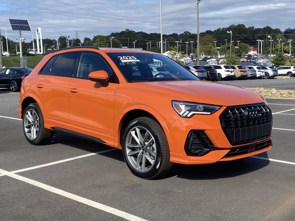 2025 Audi Q3 Premium S Line quattro Pulse Orange quattro 8-Speed Automatic with Tiptronic 2.0L 4-Cylinder TFSI 2025 Audi Q3 Premium Pulse Orange, AUDI GREENVILLE CALL 864-213-1630 Ask for Audi sales for more info! *All prices exclude IMF, appli, Alarm w/Motion Sensor, Audi Advanced Key, Auto-Dimming Power-Folding Exterior Mirrors, Auto-Dimming Rear-View Mirror, Black Exterior Trim, Black Optic Sport Package, Black Roof Rails, Convenience Package (DISC), Driver Seat Memory, Garage Door Opener (HomeLink), LED Interior Lighting Package, SiriusXM, Sport Front Bucket Seats, Wheels: 19' 5-Double-Arm Design, Wireless Phone Charging Pad.