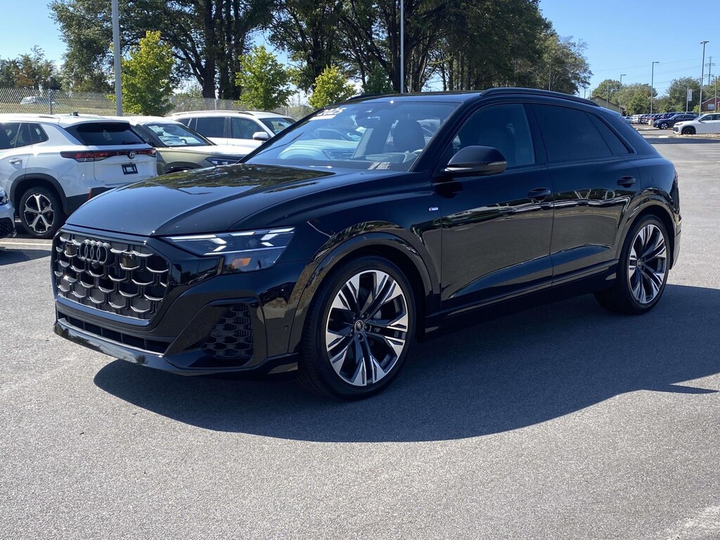 2025 Audi Q8 55 Prestige quattro Mythos Black Metallic quattro 8-Speed Automatic with Tiptronic 3.0L V6 Turbocharged DOHC 24V LEV3-ULEV70 335hp 2025 Audi Q8 55 Prestige Mythos Black Metallic, AUDI GREENVILLE CALL 864-213-1630 Ask for Audi sales for more info! *All prices exclude IMF, appli, 4-Zone Automatic Climate Control, All-Wheel Steering, Animation for Headlights & Taillights, Anthracite Gray Audi Rings, Bang & Olufsen 3D Premium Sound System, Black Exterior Trim, Black Optic Package, Convenience Package, Dark Chrome Exhaust Tips, Executive Plus Package, Front Seats w/Ventilation, HD Matrix-Design LED Headlights w/Audi Laser Light, Head-Up Display, Illuminated Door Sills, Individual Contour Front Seats, Intersection Assist, LED Interior Lighting Plus Package, Power Liftgate, Power moonroof: Panoramic, Prestige Package, Remote Park Assist Plus, S Line Exterior, S Line Illuminated Door Sills, S Line Style Package, Valcona/Cricket Leather Seat Trim, Wheels: 22' 5-Double-Arm Design Bicolor Finish.