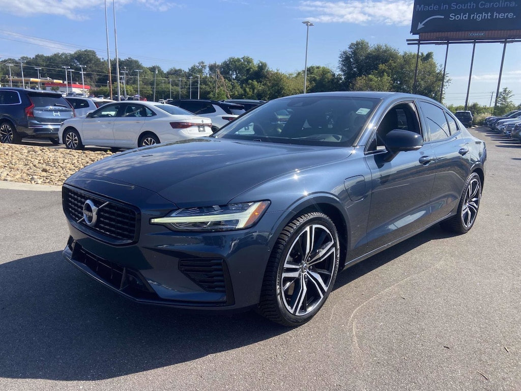 2021 Volvo S60 Recharge Plug-In Hybrid T8 R-Design Denim Blue Metallic AWD Automatic with Geartronic I4 2021 Volvo S60 Recharge Plug-In Hybrid T8 R-Design Denim Blue Metallic, PREMIUM AUDIO, POWER WINDOWS, POWER LOCKS, NAVIGATION SYSTEM, CLIMATE CONTROL PACKAGE, LEATHER SEATS, KEYLESS ENTRY, HEATED SEATS, CRUISE CONTROL, BLUETOOTH, BACKUP CAMERA, SUNROOF, MEMORY PACKAGE, I4, Active Cruise Control, Apple CarPlay/Android Auto, Auto High-beam Headlights, Auto-dimming door mirrors, Auto-dimming Rear-View mirror, Bumpers: body-color, Cargo Tray, Climate Package, Compass, Delay-off headlights, Driver door bin, Driver vanity mirror, Front reading lights, Fully automatic headlights, Garage door transmitter: HomeLink, harman/kardonr Premium Sound System, Heads-Up Display, Heated door mirrors, Heated Rear Seats, Heated Steering Wheel, Heated Windshield Wiper Blades, Illuminated entry, Leather Shift Knob, Navigation System, Navigation system: Sensus Navigation, Outside temperature display, Panic alarm, Passenger vanity mirror, Polestar, Power door mirrors, Power Sunroof, Protection Package, Rear fog lights, Rubber Floor Mats, Security system, Sensus Navigation Pro, Speed control, Turn signal indicator mirrors.