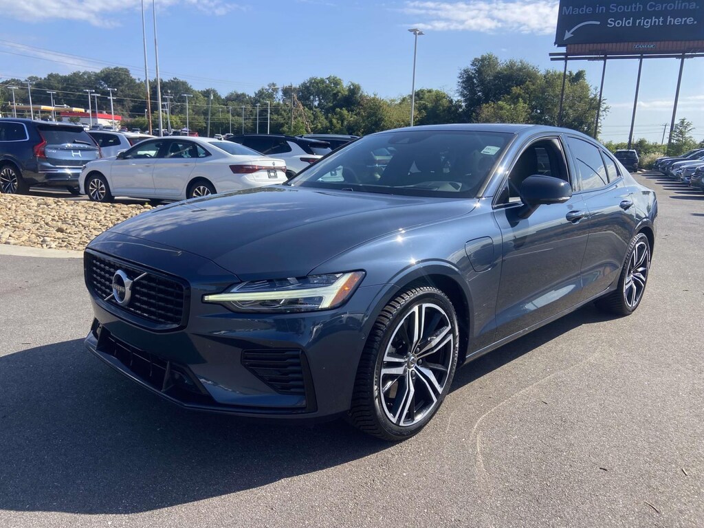 2021 Volvo S60 Recharge Plug-In Hybrid T8 R-Design Denim Blue Metallic AWD Automatic with Geartronic I4 2021 Volvo S60 Recharge Plug-In Hybrid T8 R-Design Denim Blue Metallic, POWER LOCKS, NAVIGATION SYSTEM, CLIMATE CONTROL PACKAGE, LEATHER SEATS, KEYLESS ENTRY, HEATED SEATS, CRUISE CONTROL, BLUETOOTH, BACKUP CAMERA, SUNROOF, MEMORY PACKAGE, I4, Active Cruise Control, Apple CarPlay/Android Auto, Auto High-beam Headlights, Auto-dimming door mirrors, Auto-dimming Rear-View mirror, Bumpers: body-color, Cargo Tray, Climate Package, Compass, Delay-off headlights, Driver door bin, Driver vanity mirror, Front reading lights, Fully automatic headlights, Garage door transmitter: HomeLink, Heated door mirrors, Heated Rear Seats, Heated Steering Wheel, Heated Windshield Wiper Blades, Illuminated entry, Leather Shift Knob, Outside temperature display, Panic alarm, Passenger vanity mirror, Polestar, Power door mirrors, Power Sunroof, Protection Package, Rear fog lights, Rubber Floor Mats, Security system, Speed control, Turn signal indicator mirrors.