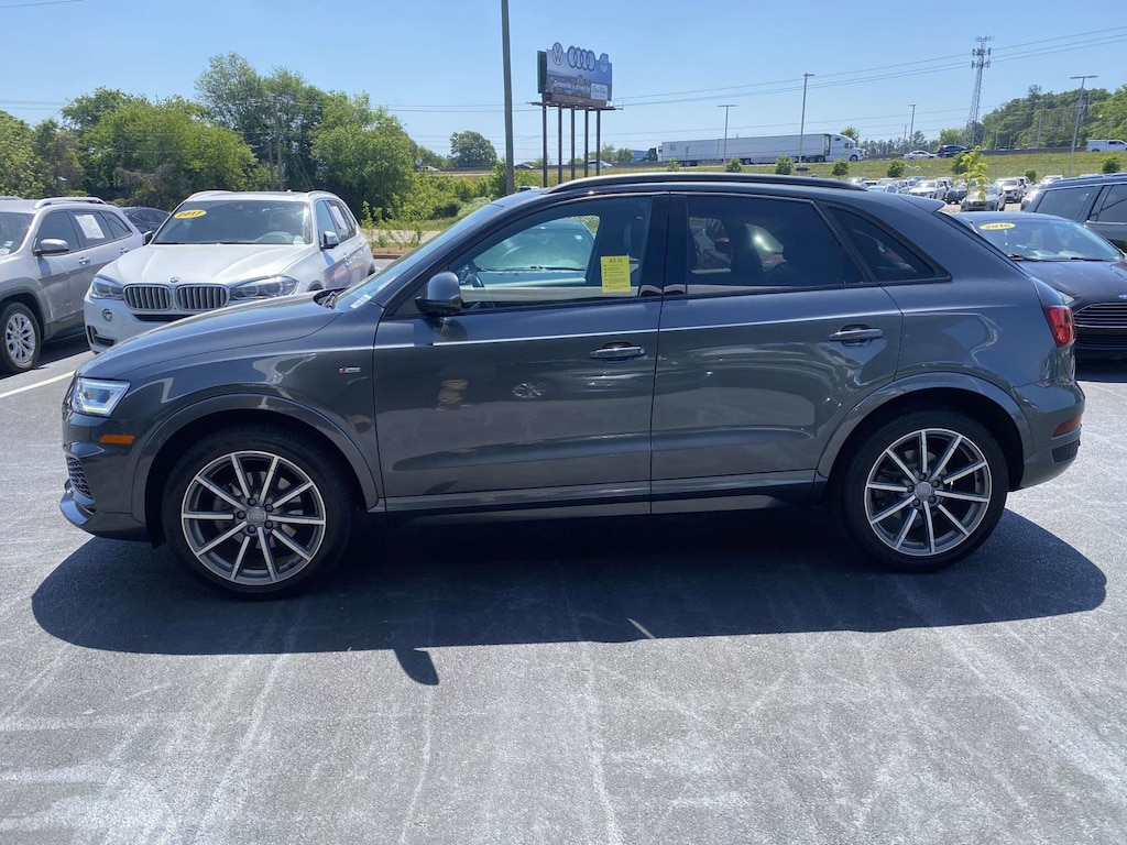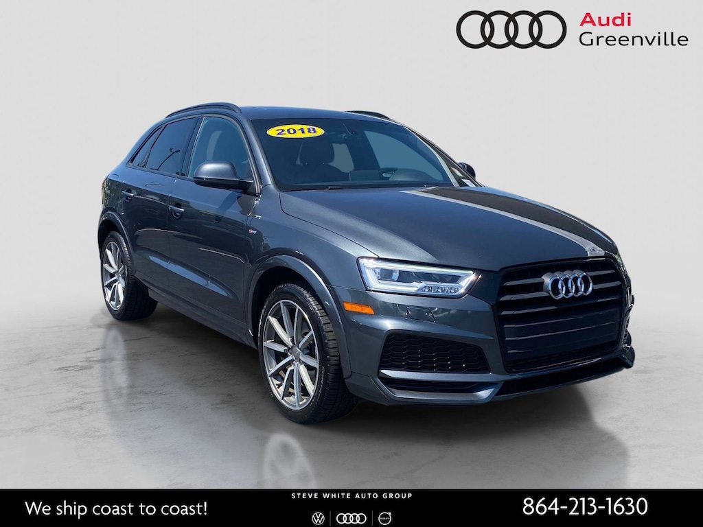 2018 Audi Q3 2.0T Premium Plus Daytona Gray Pearl FrontTrak 6-Speed Automatic with Tiptronic 2.0L 4-Cylinder TFSI 2018 Audi Q3 2.0T Premium Plus Daytona Gray Pearl, 3-Spoke Multifunction Sport Steering Wheel, Aluminum Satellite Inlays, Audi Advanced Key, Audi Side Assist, Auto-Dimming Interior Mirror w/Compass, Full LED Headlights & LED Taillights, Gloss Aluminum Exterior Window Surrounds, Heated Front Sport Seats, Power Adjustable/Folding Heated Exterior Mirrors, Power Tailgate, Premium Plus Package, Sport Package, Stainless Steel Trunk Edge, Wheels: 19 5-Double-Spoke Offroad Design.