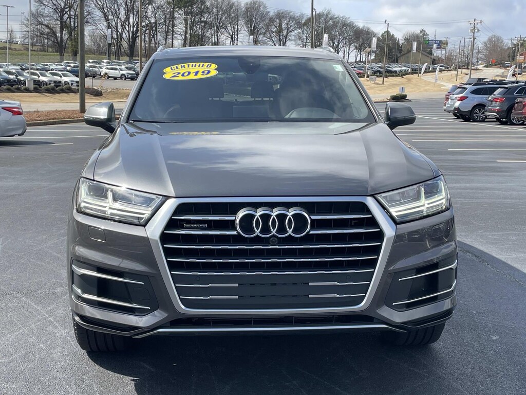 2019 Audi Q7 45 Premium Plus quattro Samurai Gray Metallic quattro 8-Speed Automatic with Tiptronic 2.0L 4-Cylinder TFSI 2019 Audi Q7 45 Premium Plus Samurai Gray Metallic, 3-Spoke Multifunction Steering Wheel w/Paddles, 3D Bose Surround Sound System, Alloy wheels, Audi Virtual Cockpit, Black Rubber All-Weather Floor Mats (Set of 4), Cold Weather Package, Convenience Package, Heated Rear Seats, LED Headlights w/Dynamic Indicators, LED Interior Lighting Package, Navigation system: MMI Navigation plus, Power Liftgate, Power Sunroof, Premium Plus Package, Topview Camera System, Towing Package, Wheels: 19' 5-V-Spoke Design.