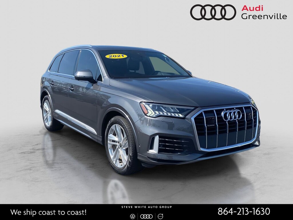 2021 Audi Q7 55 Prestige quattro Samurai Gray Metallic quattro 8-Speed Automatic with Tiptronic 3.0L TFSI V6 DOHC 2021 Audi Q7 55 Prestige Samurai Gray Metallic, Bang & Olufsen 3D Premium Sound System, Comfort Adaptive Air Suspension, Contour/Ambient LED Interior Lighting Package, Convenience Package, Dual-Pane Acoustic Side Windows, Executive Package, Head-Up Display, Illuminated Door Sills, Intersection Assist, Matrix-Design LED Headlights, Power Soft-Closing Doors, Prestige Package, Tow Hitch Receiver, Towing Package, Traffic Sign Recognition, Wheels: 20 5-Spoke Turbine-Design.