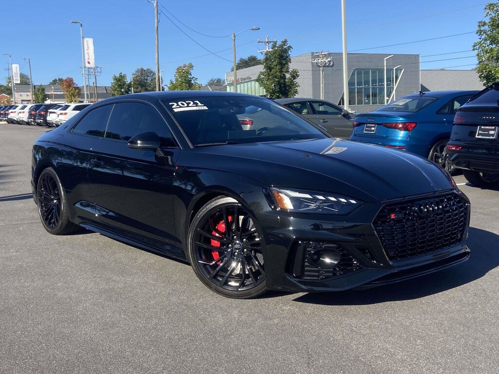 1 of 100 Black Optic Launch Edition Coupes Produced - 2021 Audi RS 5 2.9T quattro Mythos Black Metallic quattro 8-Speed Automatic with Tiptronic 2.9L V6 Turbocharged DOHC 24V LEV3-ULEV70 444hp 2021 Audi RS 5 2.9T Mythos Black Metallic, AUDI GREENVILLE CALL 864-213-1630 Ask for Audi sales for more info! *All prices exclude IMF, appli, Bang & Olufsenr sound system with 3D sound, 3-Spoke Flat-Bottom Steering Wheel in Alcantara, Audi Side Assist w/Pre-Sense Rear, Audi smartphone interface with Apple CarPlay, Black Audi Rings & Badges, Black Optic Launch Edition w/Mythos Black Metallic, Dynamic Package, Dynamic Steering, Fine Nappa Leather Seating Surfaces, High-Gloss Black Exterior Elements, High-Gloss Black Exterior Mirror Housings, High-Gloss Black Fr Spoiler & Rr Diffuser Trim, Navigation Package, RS Design Package Interior w/Red Stitching, RS Driver Assistance Package, RS Sport Exhaust System w/Black Tips, RS Sport Suspension Plus w/Dynamic Ride Control, Wheels: 20 5-Segment-Spoke-Evo High-Gloss Black.