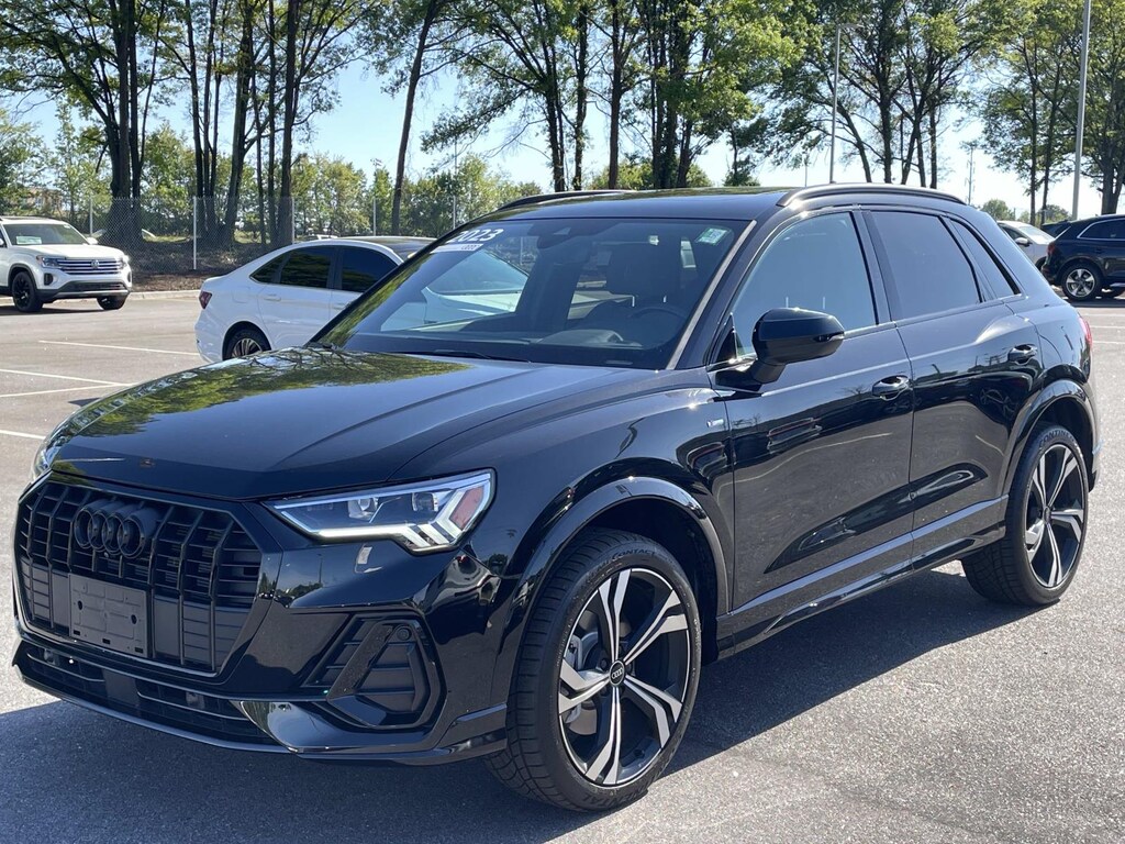 2023 Audi Q3 Premium Plus S Line quattro Mythos Black Metallic quattro 8-Speed Automatic with Tiptronic 2.0L 4-Cylinder TFSI 2023 Audi Q3 Premium Plus Mythos Black Metallic, 20' Wheel Package, Adaptive Cruise Assist w/Lane Guidance, Alarm w/Motion Sensor, Audi Advanced Key, Auto-Dimming Power-Folding Exterior Mirrors, Black Optic Sport Package, Black Roof Rails, Convenience Package, Driver Seat Memory, Frameless Auto-Dimming Interior Mirror w/Compass, High-Gloss Black Exterior Elements, LED Interior Lighting Package, LED Interior Lighting Plus Package, Premium Plus Package, SiriusXM w/360L, Sport Front Seats, Stainless Steel Trunk Sill, Top View Camera System, Wheels: 19' 5-Double-Arm Design, Wheels: 20' 5-Double-Spoke Rotor Design, Wireless Phone Charging Pad.