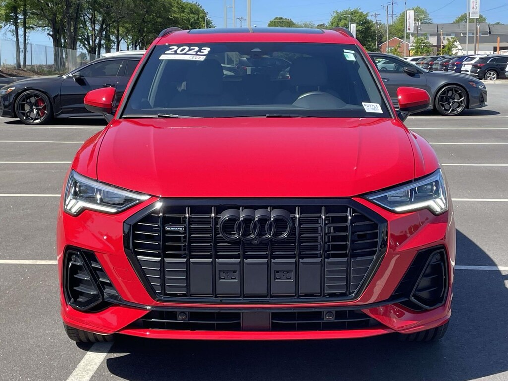2023 Audi Q3 Premium Plus S Line quattro Tango Red quattro 8-Speed Automatic with Tiptronic 2.0L 4-Cylinder TFSI 2023 Audi Q3 Premium Plus Tango Red, Q3 Premium Plus S Line quattro, Tango Red, Rotor Gray W/Anthracite Leather, 20' Wheel Package, Adaptive Cruise Assist w/Lane Guidance, Alarm w/Motion Sensor, Audi Advanced Key, Auto-Dimming Power-Folding Exterior Mirrors, Black Optic Sport Package, Black Roof Rails, Convenience Package, Driver Seat Memory, Frameless Auto-Dimming Interior Mirror w/Compass, High-Gloss Black Exterior Elements, LED Interior Lighting Package, LED Interior Lighting Plus Package, Power Liftgate, Power moonroof: Panoramic, Premium Plus Package, SiriusXM w/360L, Sport Front Seats, Stainless Steel Trunk Sill, Top View Camera System, Wheels: 19' 5-Double-Arm Design, Wheels: 20' 5-Double-Spoke Rotor Design, Wireless Phone Charging Pad.
