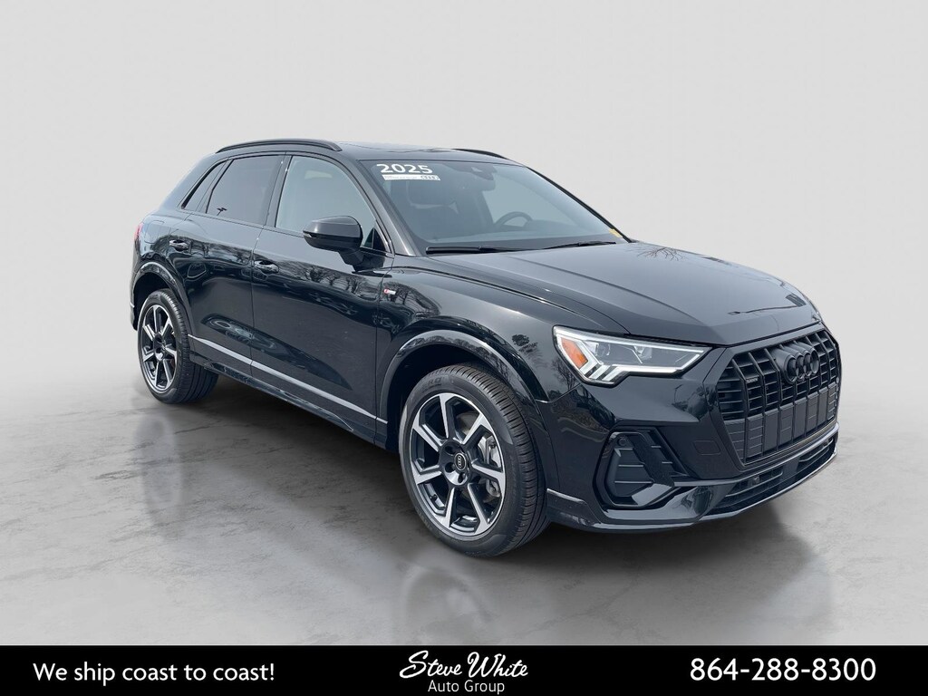 2025 Audi Q3 Premium Plus S Line quattro Black Metallic quattro 8-Speed Automatic with Tiptronic 2.0L 4-Cylinder TFSI 2025 Audi Q3 Premium Plus Black Metallic, Black Exterior Mirrors, Black Exterior Trim and Badges, Black Optic Plus Package, Black Roof Rails, Carbon Inlays, Convenience Package, Dinamica Upper Inlay and Door Armrests in Steel Gray, LED Interior Lighting Plus Package, Premium Plus Package, SONOS Premium Sound System with 3D Sound, Sport Front Bucket Seats with S Embossing, Stainless Steel Pedal Caps, Top View Camera System, Wheels: 19 7-Spoke-Rotor-Design.