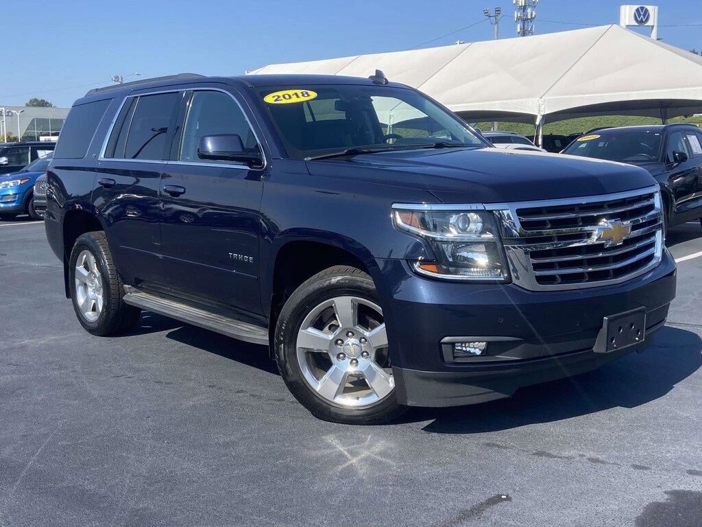2018 Chevrolet Tahoe LT Blue Velvet Metallic 4WD 6-Speed Automatic Electronic with Overdrive EcoTec3 5.3L V8 2018 Chevrolet Tahoe LT Blue Velvet Metallic, 4WD, Black Leather, 1st & 2nd Row Color-Keyed Carpeted Floor Mats, 2nd Row 60/40 Split-Folding Manual Bench, 2nd Row Pwr Release 60/40 Split Folding Bench Seat, 3.42 Rear Axle Ratio, 3rd Row 60/40 Power Fold Split-Bench, 3rd Row Manual 60/40 Split-Folding Fold Flat Bench, 4-Wheel Antilock Disc Brakes w/Brake Assist, 5 12-Volt Auxiliary Power Outlets, Auto-Dimming Inside Rear-View Mirror, Black Assist Steps, Bose Premium 9-Speaker System, Bright Bodyside Moldings, Cargo Net, Chrome Assist Step Kit (LPO), Chrome Recovery Hooks, Color-Keyed Carpeting Floor Covering, Driver Inboard & Front Passenger Airbags, Electronic Cruise Control w/Set & Resume Speed, Enhanced Driver Alert Package (Y86), Extended-Range Remote Keyless Entry, Floor Console, Fog Lamps, Front & Rear Park Assist, Front Passenger 6-Way Power Seat Adjuster, Grille Insert (LPO), Hands Free Power Liftgate, Heated 2nd Row Seats, Heated Leather Wrapped Steering Wheel, Integrated Trailer Brake Controller, Lane Change Alert w/Side Blind Zone Alert, Leather-Wrapped Steering Wheel, LT Signature Package, Luxury Package, Max Trailering Package, Memory Settings, OnStar Basic Plan For 5 Years, Passive Entry System, Polished Exhaust Tip, Power Liftgate, Power Sunroof, Power Tilt & Telescopic Steering Column w/Memory, Power-Adjustable Accelerator & Brake Pedals, Power-Folding Heated Outside Mirrors, Preferred Equipment Group 1LT, Push Button Keyless Start, Radio: Chevrolet MyLink w/Nav/AM/FM Stereo, Rear Cross-Traffic Alert, Rear Park Assist w/Audible Warning, Rear Seat Blu-Ray/DVD Entertainment System, Remote Vehicle Start, Roof-Mounted Luggage Rack Side Rails, SiriusXM Satellite Radio, Standard Suspension Package, Sun, Entertainment & Destinations Package, Universal Home Remote, Wheels: 20 x 9 Chrome.