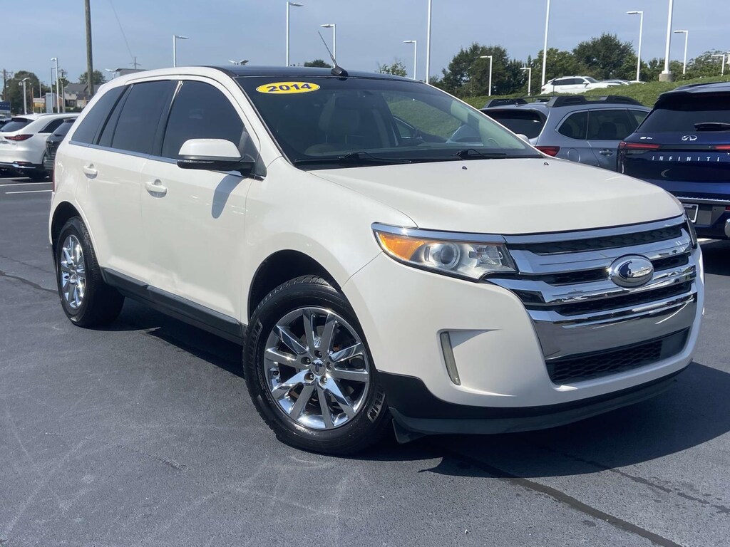 2014 Ford Edge Limited White Platinum Clearcoat Metallic FWD 6-Speed Automatic with Select-Shift 3.5L V6 Ti-VCT 2014 Ford Edge Limited White Platinum Clearcoat Metallic, Adaptive Cruise Control & Collision Warning, AM/FM Stereo w/Single CD/MP3/Navigation, Driver Entry Package, Equipment Group 302A, High-Intensity Discharge Headlamps, Panoramic Vista Roof, Vision Package.