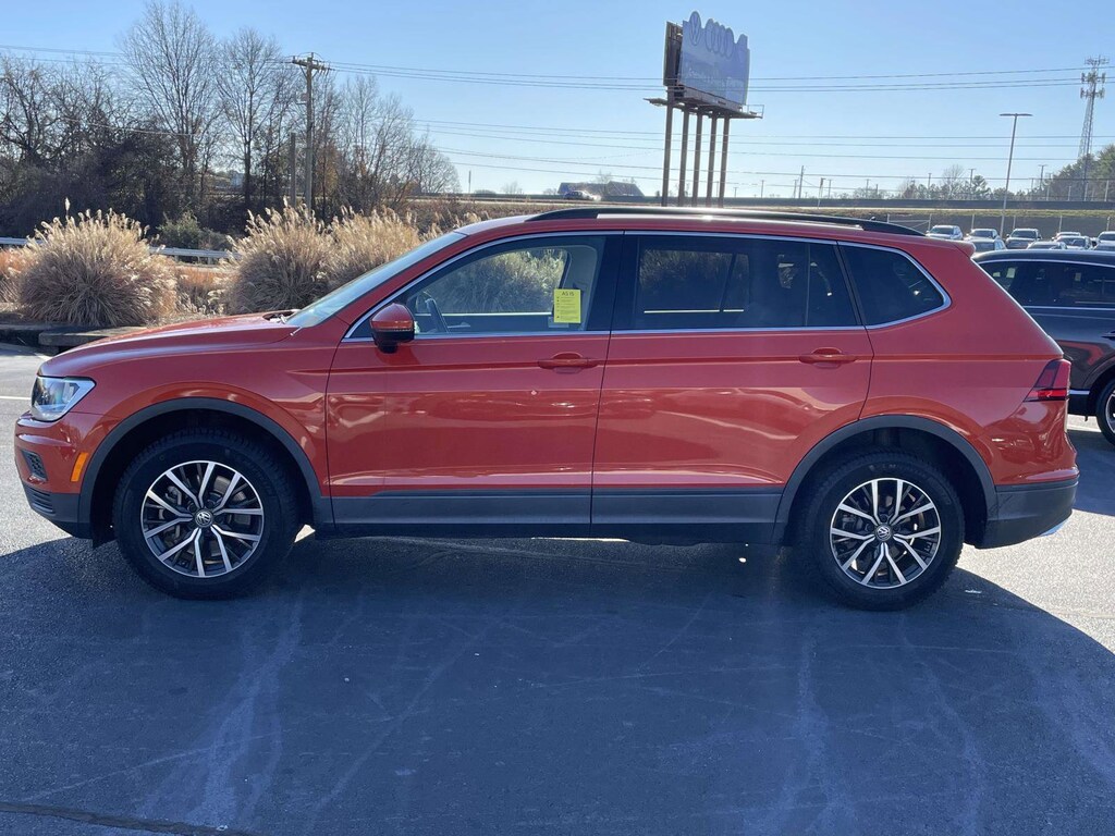 2019 Volkswagen Tiguan 2.0T SE 4Motion Habanero Orange Metallic AWD 8-Speed Automatic with Tiptronic 2.0L TSI DOHC AWD, ABS brakes, Alloy wheels, Compass, Electronic Stability Control, Front dual zone A/C, Heated door mirrors, Heated Front Comfort Seats, Heated front seats, Illuminated entry, Low tire pressure warning, Remote keyless entry, Traction control.